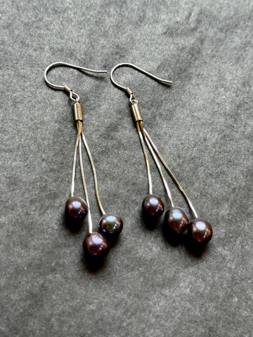 Beautiful and elegant. Three pearl dangle earrings. Sterling silver components.