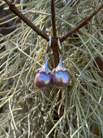 Gorgeous teardrop (9-10mm) Lavender freshwater pearl dangles. Sterling silver components.